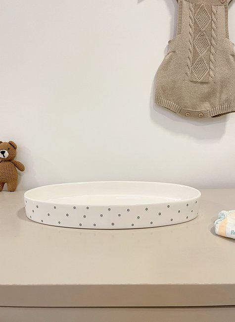 Com ela, você poderá manter todos os itens do kit sempre organizados, facilitando o dia a dia com seu pequeno. Feita em cerâmica esmaltada, a bandeja é elegante e resistente, proporcionando durabilidade e praticidade.