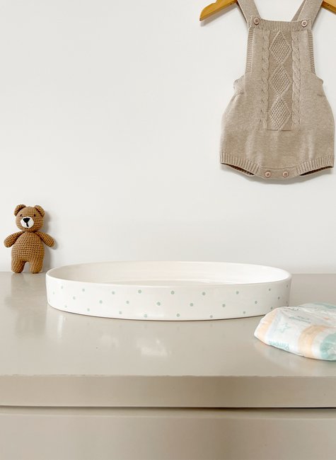 Com ela, você poderá manter todos os itens do kit sempre organizados, facilitando o dia a dia com seu pequeno. Feita em cerâmica esmaltada, a bandeja é elegante e resistente, proporcionando durabilidade e praticidade.