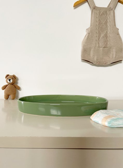 Com ela, você poderá manter todos os itens do kit sempre organizados, facilitando o dia a dia com seu pequeno. Feita em cerâmica esmaltada, a bandeja é elegante e resistente, proporcionando durabilidade e praticidade.