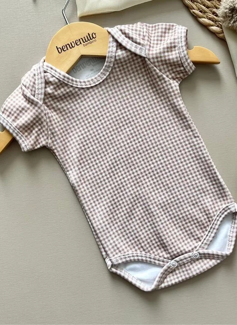 Se você procura uma roupa para bebê que una conforto, elegância e praticidade, o nosso body manga curta com estampa xadrez Vichy bege é a escolha ideal. Um clássico repaginado com toque moderno e delicado, pensado para vestir seu bebê com muito charme em qualquer ocasião.