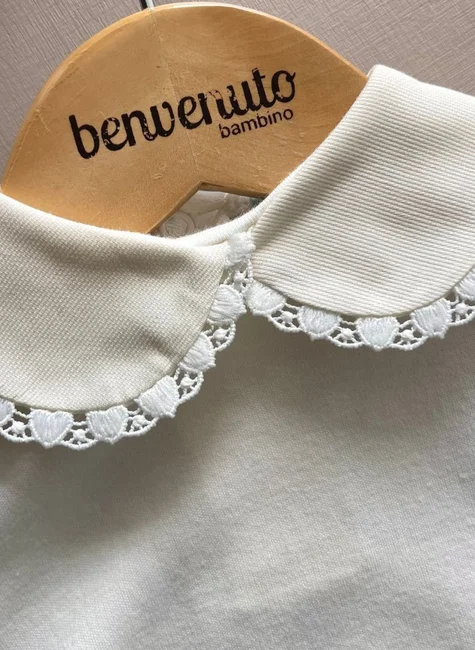 Adquira agora o body feminino com manga curta e gola com acabamento de renda coração da marca Benvenuto e deixe sua bebê confortável e estilosa em qualquer ocasião. Não perca essa oportunidade de proporcionar o melhor para a sua bambina, garanta já o seu!