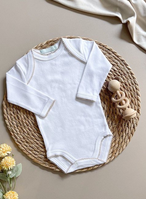 Este body para bebê é ideal para garantir o máximo de conforto e praticidade no dia a dia. Confeccionado em tecido 100% algodão, oferece toque suave e respirabilidade, perfeito para peles sensíveis. O acabamento em picueta nas bordas adiciona um charme sutil, valorizando o estilo clássico e sofisticado.