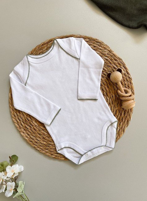 Este body para bebê é ideal para garantir o máximo de conforto e praticidade no dia a dia. Confeccionado em tecido 100% algodão, oferece toque suave e respirabilidade, perfeito para peles sensíveis. O acabamento em picueta nas bordas adiciona um charme sutil, valorizando o estilo clássico e sofisticado.