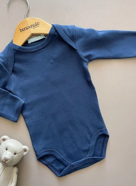 Se você procura conforto e qualidade para o seu bebê, o body com manga longa da marca Benvenuto é a escolha perfeita. Feito com tecido 100% algodão suedine, na cor marinho, disponível nos tamanhos RN (0 a 45 dias) e P (0 a 3 meses), para melhor ajuste, proporcionando maciez, leveza e um toque suave na pele delicada do seu bambino.