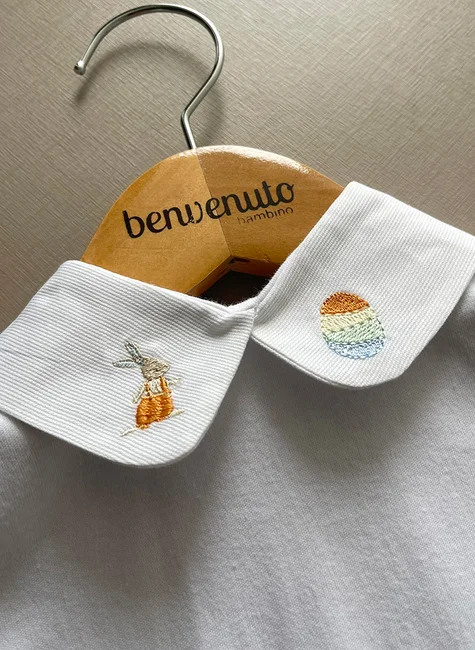 1. O Body possui uma gola bordada com detalhes do coelhinho da Páscoa. Esse detalhe traz um charme extra para a peça, deixando o bebê ainda mais fofo e encantador.