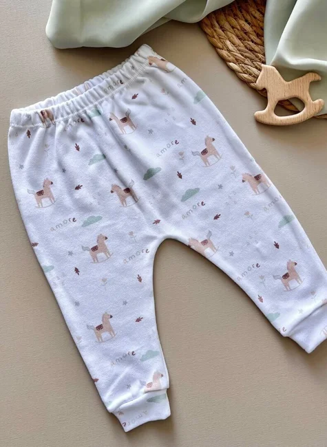 Com uma estampa de cavalinho unissex, a calça se torna ainda mais encantadora. O design delicado e lúdico de cavalinhos traz um toque fofo e alegre, tornando a peça ideal tanto para meninos quanto para meninas. A estampa é versátil, combinando facilmente com outras peças do guarda-roupa, permitindo diversas combinações de looks, perfeitas para diferentes ocasiões.
