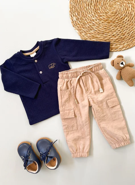 O Conjunto Cauã é perfeito para mamães que buscam um look confortável, moderno e funcional para o dia a dia do bebê.
