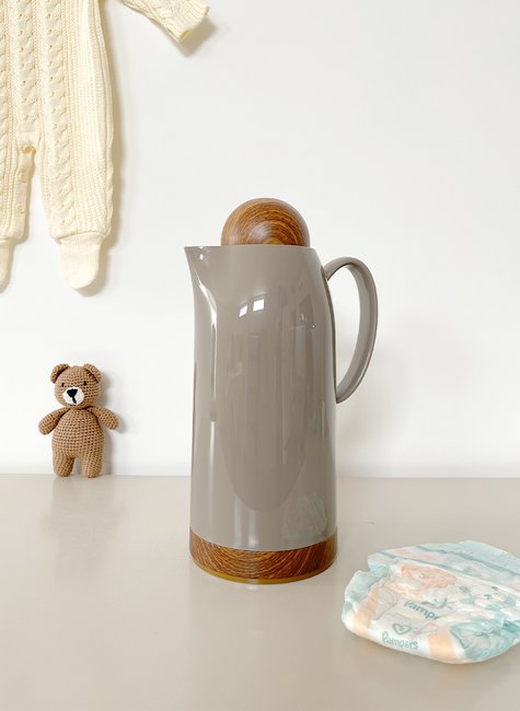 Garrafa térmica 1 litro possui um design elegante e funcional para o kit higiene do bebê, ideal para manter líquidos na temperatura ideal por até 6 horas. Com capacidade perfeita para o uso diário, traz uma ampola interna de vidro que garante alta eficiência térmica, aliada a um acabamento externo em plástico resistente com detalhes que imitam madeira, conferindo sofisticação ao ambiente do bebê. Seu modelo de tampa com rosca e botão facilita a vedação e evita vazamentos, proporcionando praticidade e segurança para os cuidados diários. Essencial para mães e pais que buscam conforto, estilo e performance na rotina do bebê.