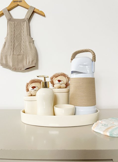 O Kit Higiene para Bebê Benvenuto é a escolha ideal para quem busca praticidade, organização e elegância no momento da troca de fraldas. Desenvolvido para facilitar uma das rotinas mais frequentes nos primeiros meses do bebê, esse kit higiene completo em cerâmica esmaltada reúne itens essenciais para manter tudo sempre à mão, com segurança e higiene. Diferente de opções comuns do mercado, ele se destaca pelo material vitalício, fácil de limpar e com acabamento refinado, perfeito para compor a decoração do quarto do bebê. É uma solução funcional e durável para pais que valorizam qualidade, organização e cuidado desde os primeiros dias de vida.