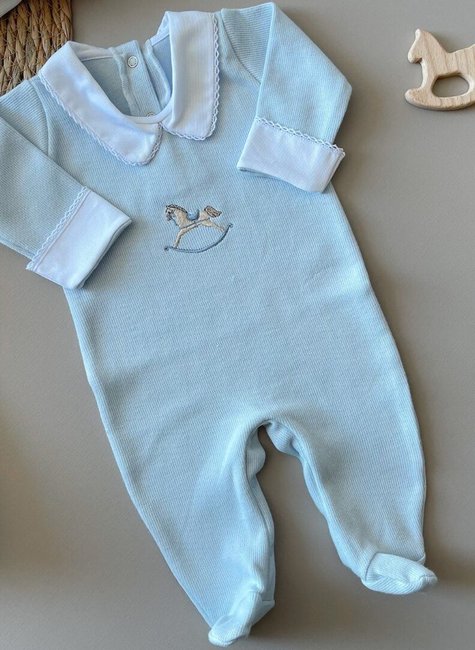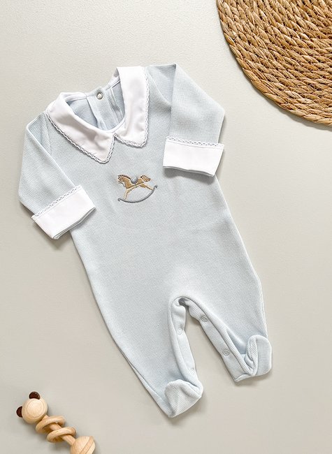 O macacão masculino em malha tricotil 100% algodão da Benvenuto Bambino é uma peça de roupa elegante e confortável, perfeito para qualquer ocasião. Com um bordado de cavalinho, na cor azul, esse macacão é ideal para deixar seu bebê ainda mais lindo. O acabamento de picueta, presente na gola e punho de fustão, adiciona um toque especial de sofisticação ao visual. Além disso, a abertura por botões de pressão nas costas e pernas proporciona facilidade na hora da troca. Disponível nos tamanhos RN (0 a 45 dias) e P (0 a 3 meses).