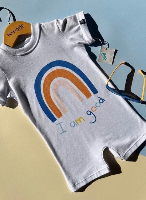 O Macacão Curto para Bebê com Manga Curta Branco I am good é um item indispensável para a praticidade e o conforto dos pequenos. Confeccionado em 95% algodão 5% elastano, ele proporciona uma sensação agradável de frescor e maciez para a pele delicada do bebê. Além disso, conta com fechamento nos ombros e pernas por botões de pressão, facilitando as trocas. Disponível nos tamanhos G (6 a 9 meses), GG (9 a 12 meses), 12 a 18 meses e 18 a 24 meses, o que permite escolher o tamanho ideal de acordo com o crescimento do bebê.