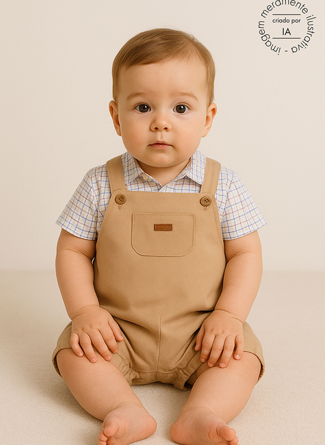 Descubra o conforto e o estilo do Macacão para menino Jardineira sarja caramelo com xadrez Heitor, perfeito para os pequenos exploradores do cotidiano. Confeccionado em sarja de alta qualidade, o macacão proporciona resistência e toque macio, ideal para a pele delicada do bebê. Peça única com aparência de camisa no xadrez de algodão leve complementa o visual clássico, garantindo frescor e liberdade de movimento.
