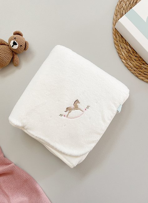 Uma das principais características da Manta de Pelúcia Bordada é o seu design sofisticado e elegante. A pelúcia e o bordado fazem desta manta uma peça essencial para o enxoval, por sua beleza, delicadeza e conforto.