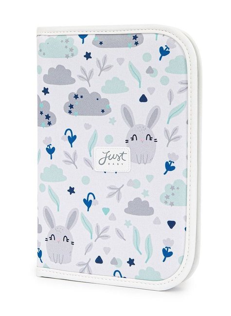 Possui compartimento para carteira de vacinação, bolso em cristal para certidão de nascimento e documentos, fechamento em zíper.