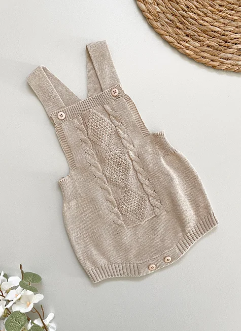 O Romper Blommer Trança é confeccionado em tricot 50% algodão e 50% acrílico, hipoalergênica e térmica, com abertura nas alças e pernas por botões de casinha, com detalhe da trama trançada, na cor Sisal, com regulagem nas alças. Foi desenvolvido com muito cuidado e carinho para garantir a qualidade e o conforto para seu bebê! Disponível nos tamanhos RN (0 a 45 dias), P (0 a 3 meses), M (3 a 6 meses), G (6 a 9 meses) e GG (9 a 12 meses).