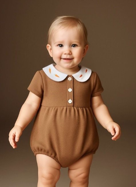 O destaque desse modelo é o bordado exclusivo de cenourinha, símbolo de saúde, energia e crescimento. A cenoura, por ser um alimento natural e vibrante, remete à vitalidade e ao cuidado com o bem-estar do bebê. Um detalhe lúdico que transmite leveza e acrescenta personalidade à roupinha de bebê.