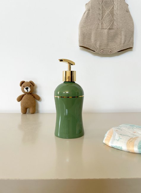 Com seu design moderno e elegante, a saboneteira líquida em cerâmica para kit higiene do bebê se destaca não apenas pela sua beleza, mas também por sua funcionalidade. Ela é fabricada em cerâmica esmaltada, o que garante maior durabilidade e resistência.