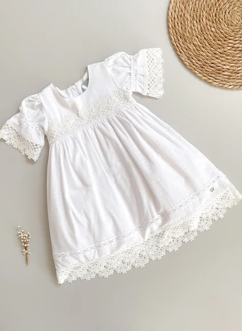 No momento de batizar uma criança, é importante escolher roupas que transmitam toda a beleza e pureza da ocasião. E se você está em busca de um vestido para esse momento tão especial, acabou de encontrar a opção ideal! Apresentamos o Vestido para Batizado Maquinetado com renda e mini pérolas da marca Benvenuto, uma peça que une estilo, qualidade e conforto para deixar sua Bambina ainda mais encantadora!