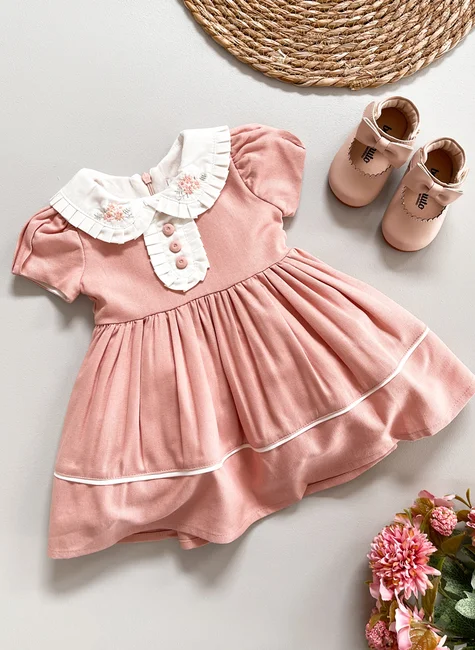 Ideal para quem procura um vestido infantil em linho rosé sofisticado e confortável, com acabamento refinado e design clássico.